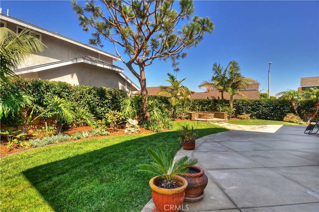 Welcome to this private corner-lot home in the sought-after Bolsa Landmark community. Featuring a convenient downstairs bedroom and bath, the home is filled with soaring ceilings, warm hardwood floors, and abundant natural light. The remodeled kitchen offers granite countertops, custom cabinetry, and a breakfast bar overlooking a sun-drenched backyard retreat with mature palms, patios, and a fire pit, perfect for morning coffee or evening gatherings. The spacious primary suite is a true escape with a soaking tub, walk-in shower, dual vanity, and walk-in closet. Enjoy refreshing ocean breezes, ample garage storage, and direct access to the Bolsa Chica Wetlands. Central Park is nearby with walking trails, playgrounds, a dog park, and an equestrian center, along with beach proximity ideal for an active coastal lifestyle. Located within the Seacliff Elementary School District, this home combines privacy, convenience, and location in one of Huntington Beach's most desirable neighborhoods.