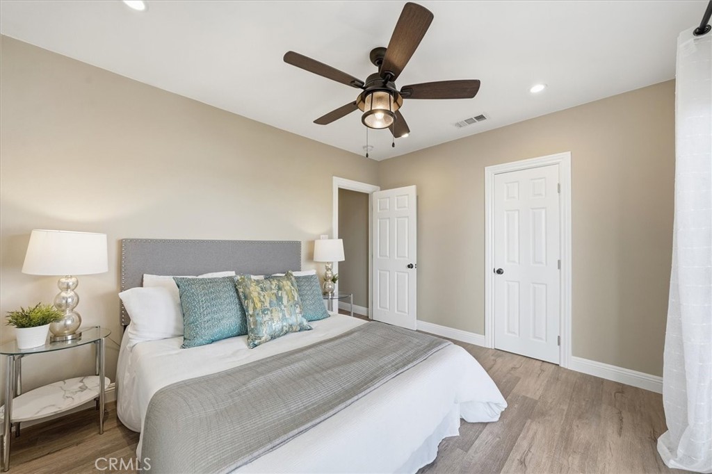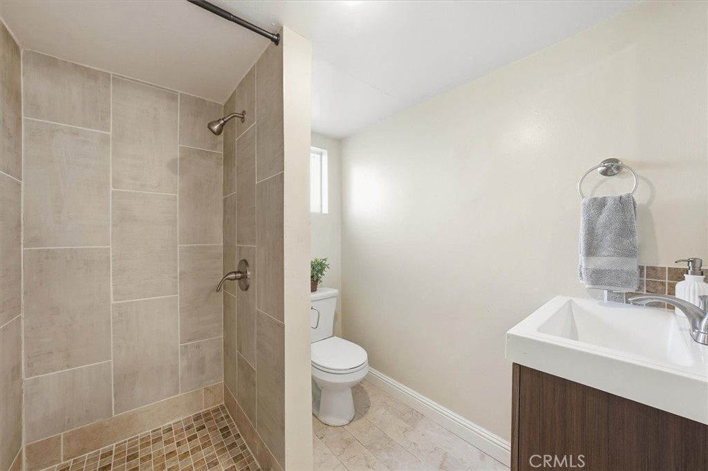 Experience style and function at 2805 S La Brea, a thoughtfully upgraded three-bed, one-bath home with a detached garage and bonus studio featuring a three-quarter bath. A 2021 renovation reimagined the layout with a sun-filled, open-concept kitchen showcasing quartz countertops, shaker cabinetry, custom tile backsplash, and stainless steel appliances. The living and dining areas are anchored by a striking fireplace wrapped in coordinating tile. Throughout the home, enjoy newer luxury vinyl flooring, recessed lighting, updated electrical and plumbing, and central HVAC with modern ductwork. A dedicated laundry room sits just off the kitchen and opens to a private outdoor retreat complete with a covered deck with ceiling fan, turf lawn, mature fruit trees including tangelo, lemon, and pomegranate, and a thriving raspberry patch. The finished garage provides exceptional flexibility, ideal for a home office, creative studio, or potential future ADU use, buyer to verify. A motorized gate, wood fencing, and Nest camera system enhance privacy and peace of mind. Ideally located near Michelin-starred dining, local coffee shops, parks, and transit, this is West Adams living at its best.