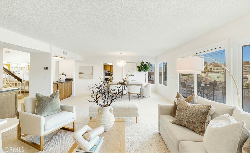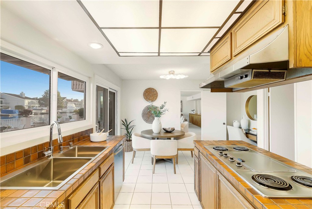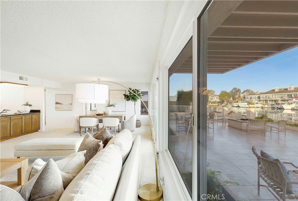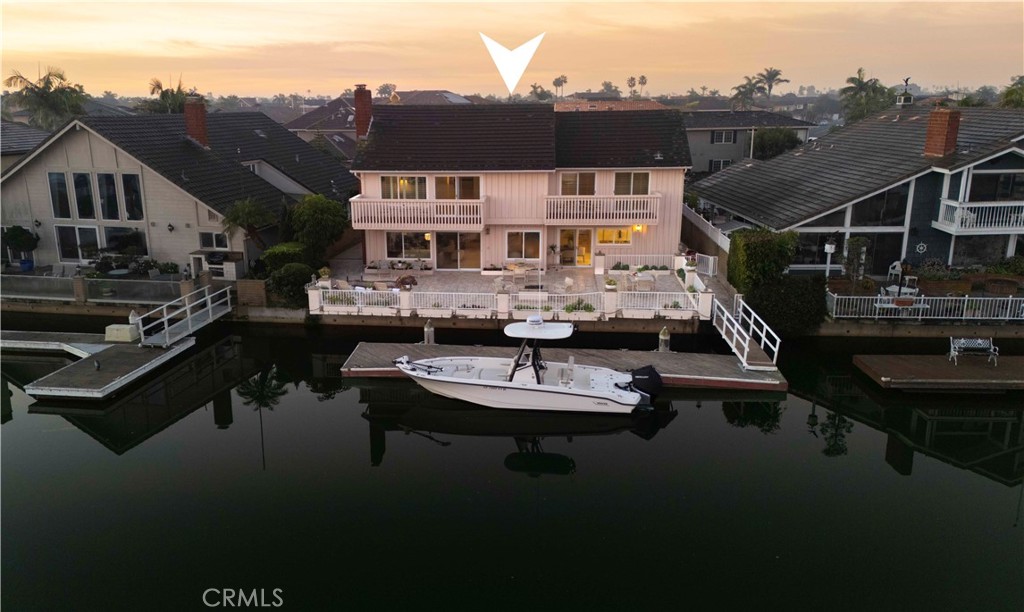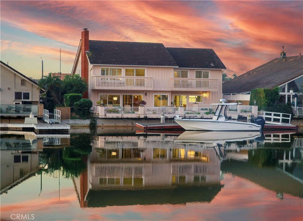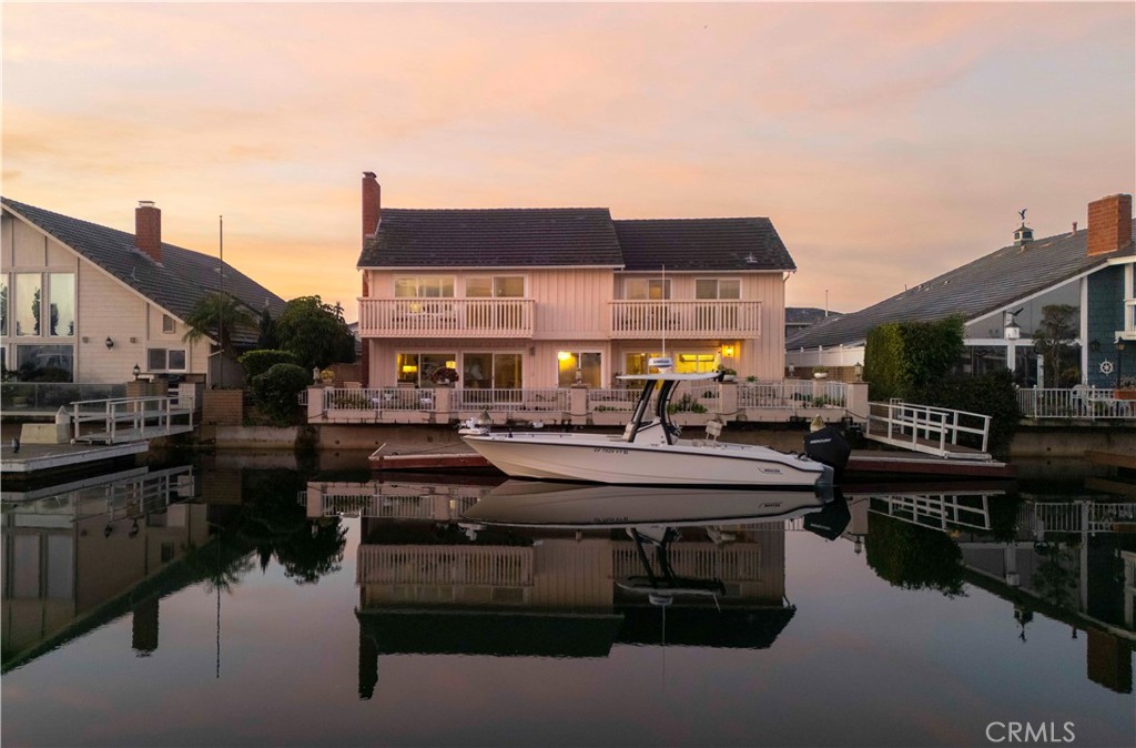 Opportunities like this are measured in decades, not years. Located on Trinidad Island in Huntington Harbour, 3801 Seascape offers generous water frontage and a forty eight foot private dock just steps beyond the patio. Homes like this rarely change hands. The home was held by its original owners since construction, drawn by deep water access and the steady rhythm of life that defines one of the harbor's most established island communities. Positioned at the end of a quiet cul de sac, the property is approached through mature landscaping and sandstone pavers, creating a calm and understated arrival. Inside, natural light fills the home through dual pane windows, plantation shutters, and sliding beveled glass doors that open to the waterfront setting. The main level offers a well balanced and functional floor plan, including a bedroom with a full bath and a separate laundry area. The kitchen overlooks the harbor and retains its original character, with a practical layout designed for everyday use and casual gathering. Living and dining areas connect comfortably, while the family room is defined by soaring ceilings that create an open and relaxed atmosphere for daily living and entertaining. The waterfront patio and cantilevered deck were intentionally added to extend the home toward the water and are ideal for hosting friends and family, enjoying meals outdoors, or watching the harbor lights during the annual Christmas Boat Parade. Mornings often begin with coffee at high tide, observing sea life and the activity of kayakers, paddleboarders, boaters, and fishermen moving through the channel. Upstairs, the primary suite features vaulted ceilings, a brick fireplace, and a private balcony overlooking the water, where on clear winter mornings snow capped mountains may be visible. Two additional bedrooms share a bathroom and a Jack and Jill balcony, each enjoying water views where breathing in the salt air and watching the water drift by has a way of slowing everything down. With a home like this, there is little reason to leave. Evenings often unfold with the soft glow of the harbor, reflections dancing across the water, and a quiet sense of gratitude that comes from being exactly where you are meant to be. Residents often walk the island's perimeter paths, take a boat ride to Peter's Landing, or spend the afternoon near the water before returning home as the sun settles over the channel. This is not a vacation home. You live where people vacation.